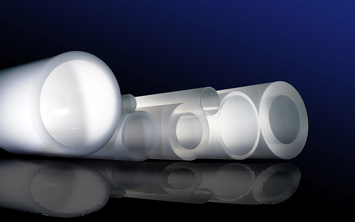 Hohlzylinder (Billets) aus klarem Quarzglas. Bild: QSIL