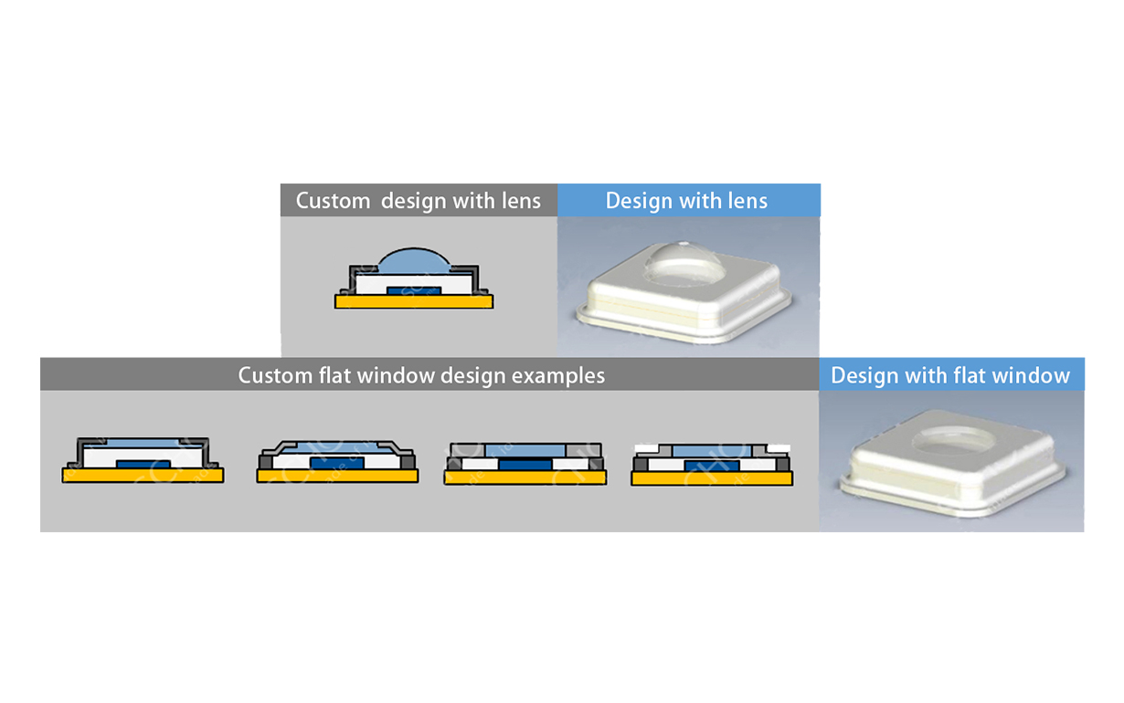 Rectangular caps and lids are used for opto-electronic applications (Sensors, LED packages etc.)