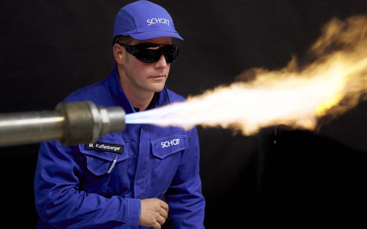 Successful testing on a large industrial scale: SCHOTT has produced an optical glass with 100% hydrogen for the first time. Photo: SCHOTT