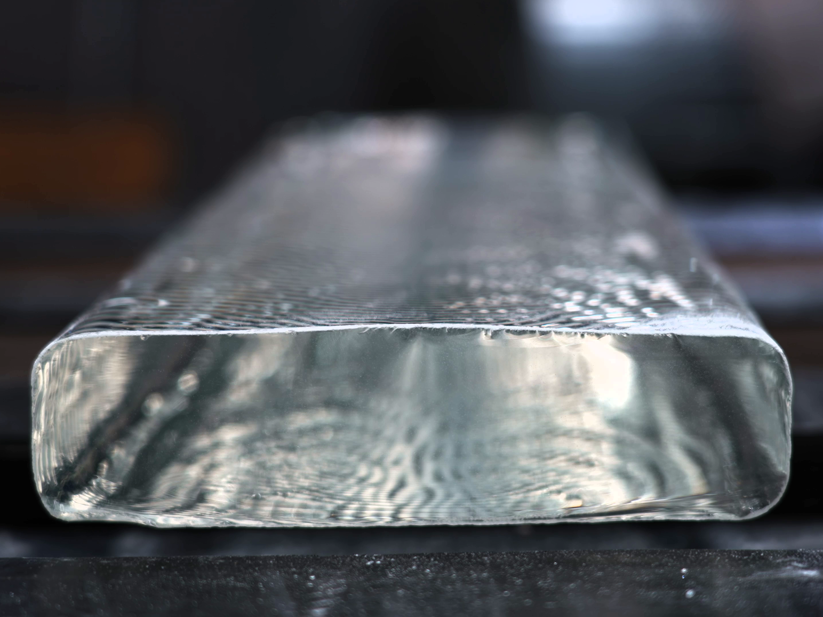 A close-up of optical glass which was produced with 100% hydrogen for the first time. Photo: SCHOTT.