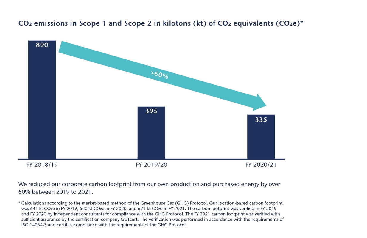 "At the moment, we are investing a mid-double-digit million euro amount to achieve our climate targets. We are using this money to acquire high-quality green electricity and also research new technologies for decarbonized production," explained Dr. Jens Schulte. "In order to convert our plants to these technologies, we expect to invest significantly higher sums in the coming years."