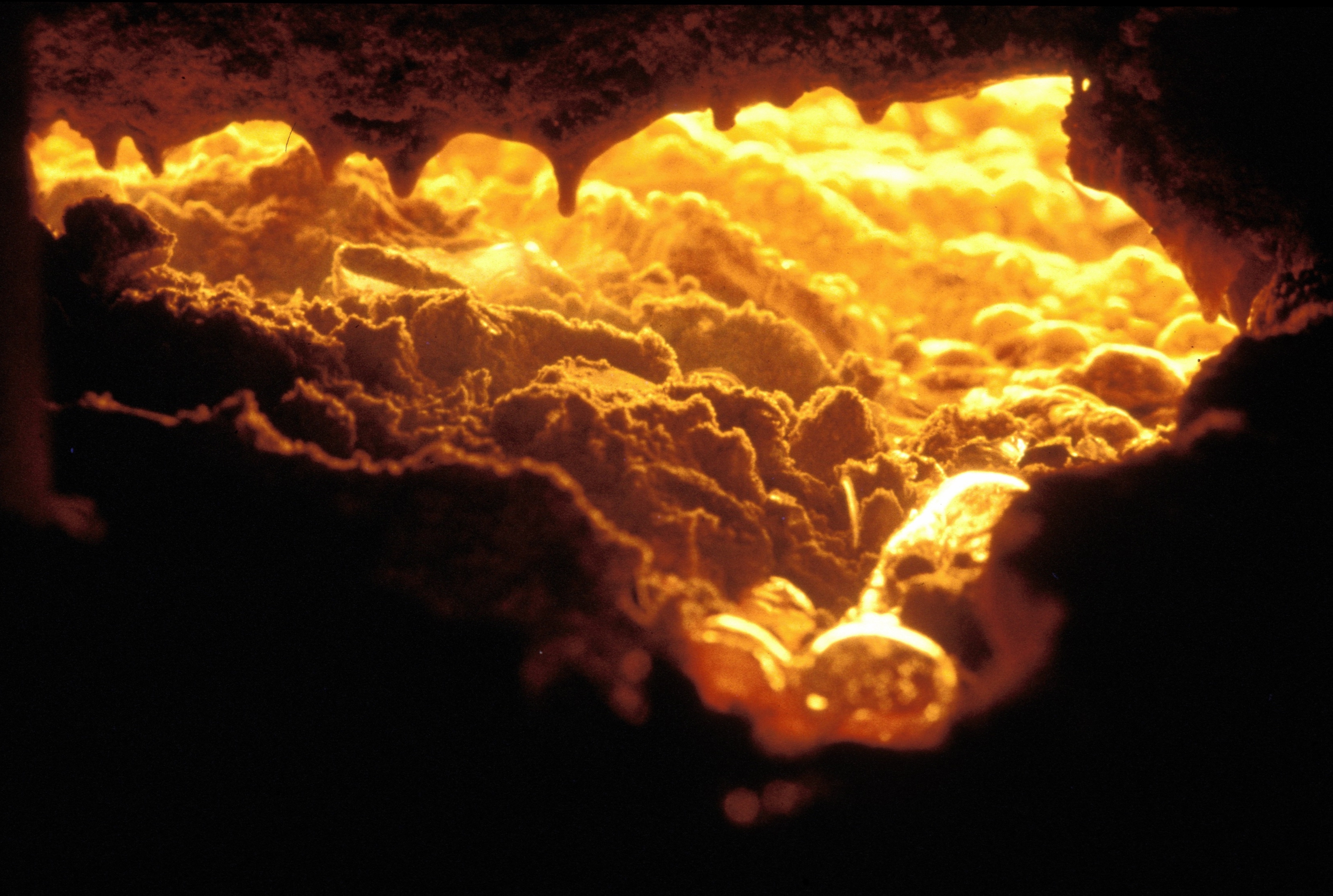 A look inside a melting tank: A lot of energy is needed to melt specialty glass. The temperatures reach up to 1,700° Celsius. Photo: SCHOTT