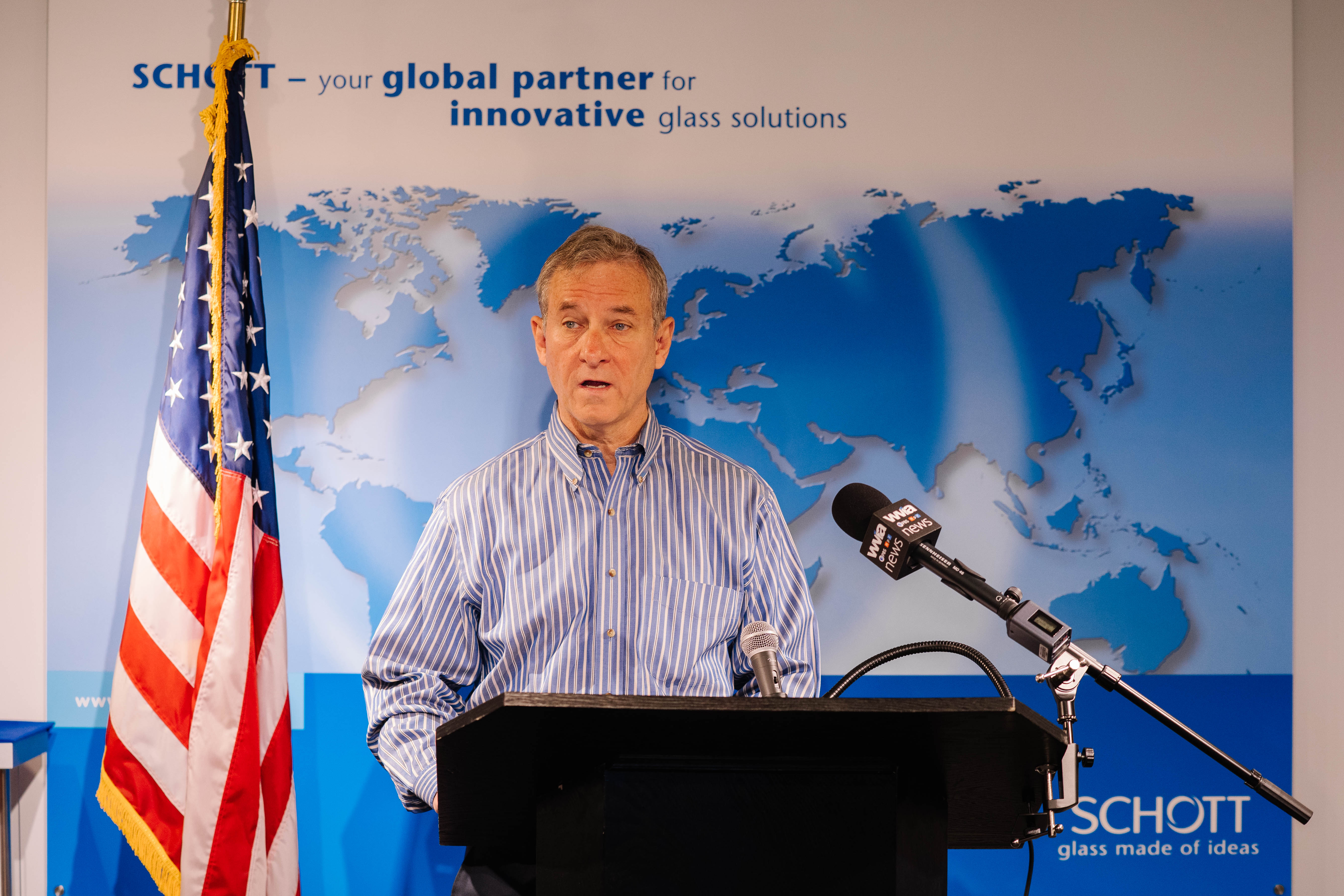 U.S. Representative Matt Cartwright (PA-08) speaking at press conference at SCHOTT in Duryea, PA (Credit: SCHOTT).