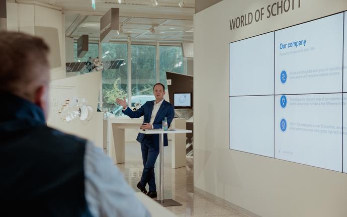 Chief Financial Officer Marcus Knöbel presents SCHOTT's products and solutions to the Group.