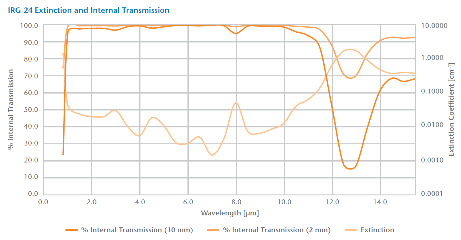 IRG 24 hat eine hervorragende Transmission im SWIR, MWIR und LWIR sowie das niedrigste dn/dT der der IRG-Serie.