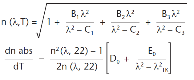 Calculation Formula: Refractive index as a function of wavelength and temperature